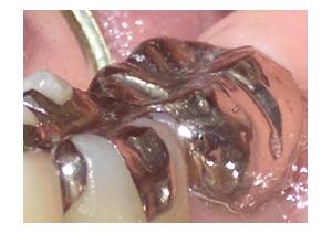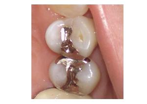 保険内 銀合金(フルクラウン) 神経をとった後、大きいむし歯の治療後は歯質が少ないため、全体を覆う形で直します。全部金属製ですので、強度的にもあまり問題はありません。全体が金属ですので特に下の歯では目立つことのだ最大の欠点です。料金:3,500円~4,100円(保険3割負担)
