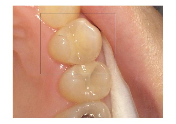小さい金属を白いタイプに変えるだけで も見た目の印象派はガラッと変わります。はめ込みタイプは、詰めものでは治せない、少し大きい虫歯に使用されます。歯の中に金属が埋め込まれているように見えます。